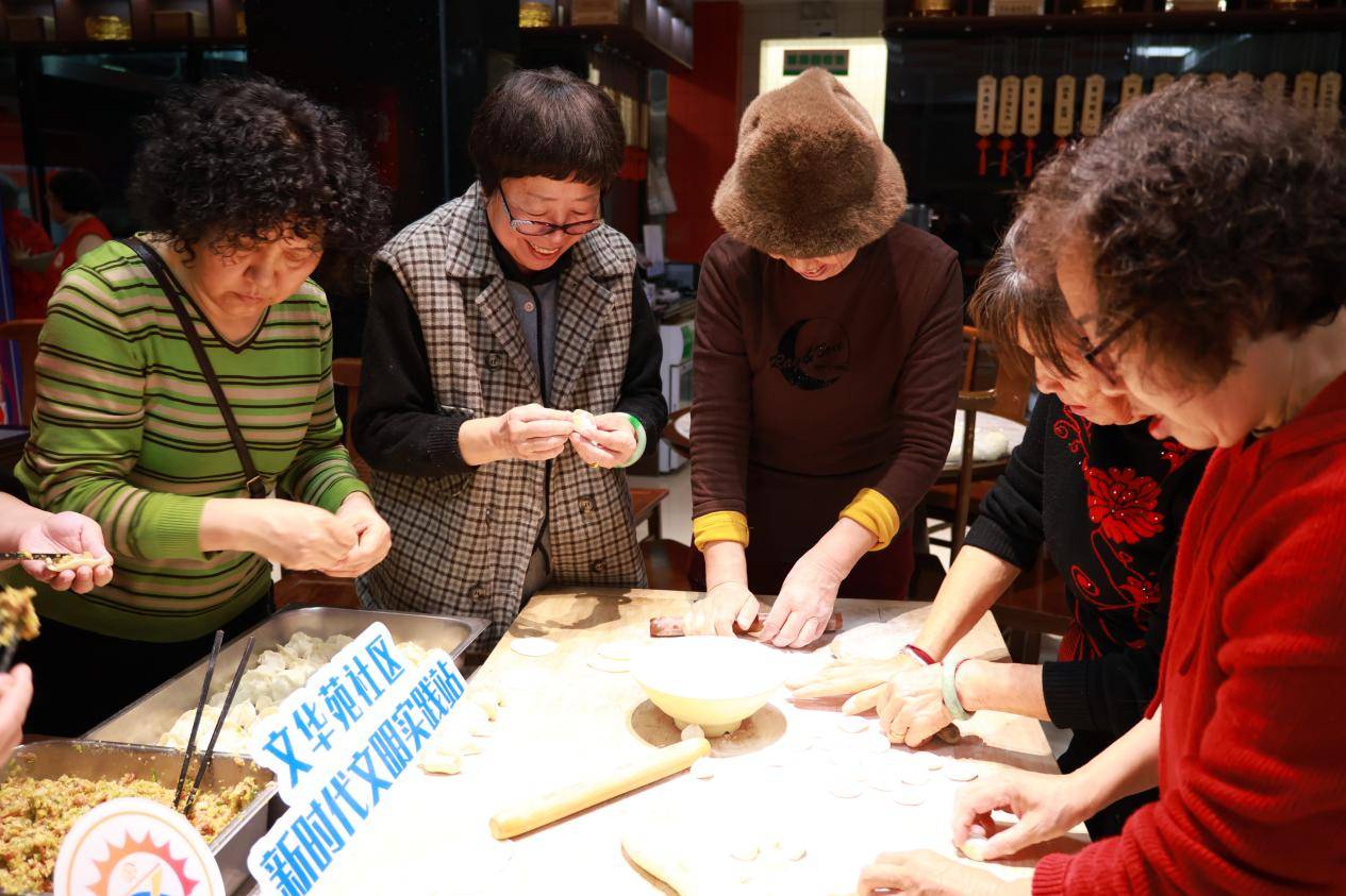 工作人员提前准备了丰富的饺子馅料、劲道的面皮,居民们围坐一堂,纷纷动手包起饺子。现场既有经验丰富的老人传授技巧,也有年轻人虚心请教的画面,大家有说有笑,一边儿唠家常,一边儿相互切磋包饺子的技巧,元宝样儿、老鼠样儿、脸上沾满面粉却笑得格外灿烂。不一会儿,桌子上便摆满了各式各样的饺子。