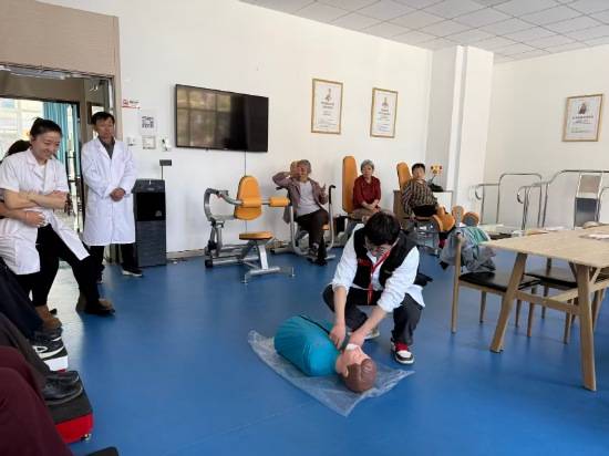 实操教学环节,医护人员借助模拟人,现场演示心肺复苏(CPR)标准流程、胸外按压深度与频率、人工呼吸操作要点等关键技能 。手把手指导居民规范操作,耐心纠正动作偏差,让大家直观掌握急救实操要领。居民们踊跃参与、反复练习,积极提问互动,医护人员逐一细致解答,现场氛围热烈而温馨 。