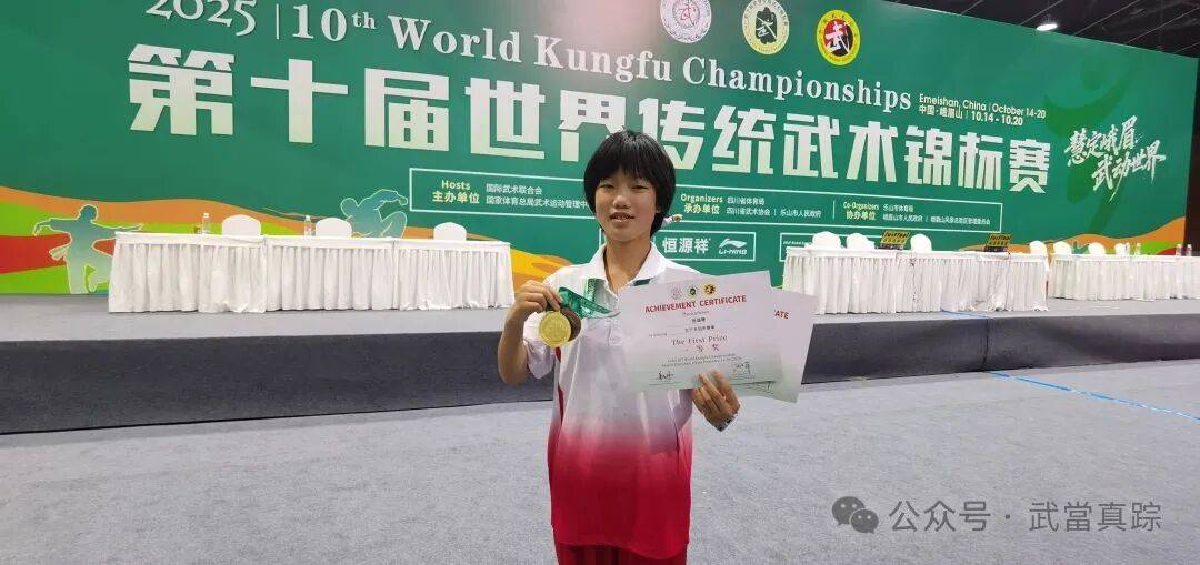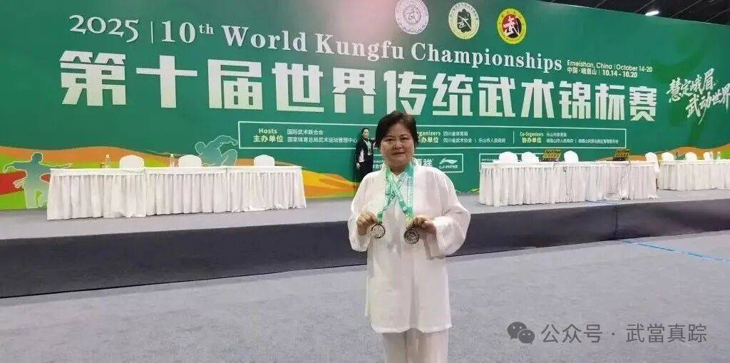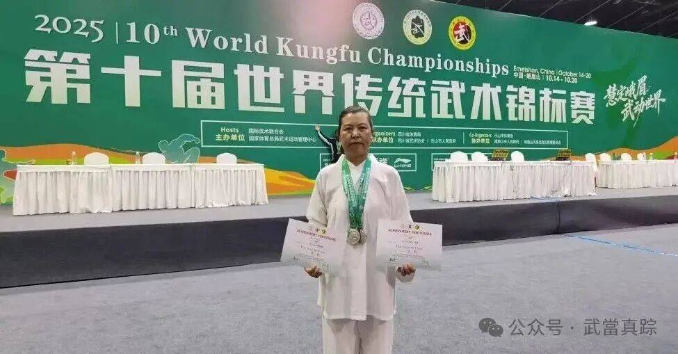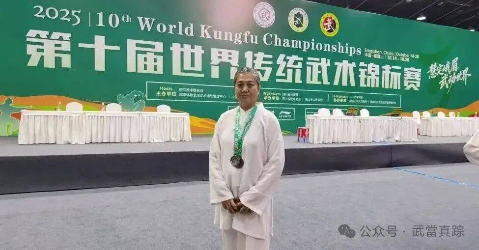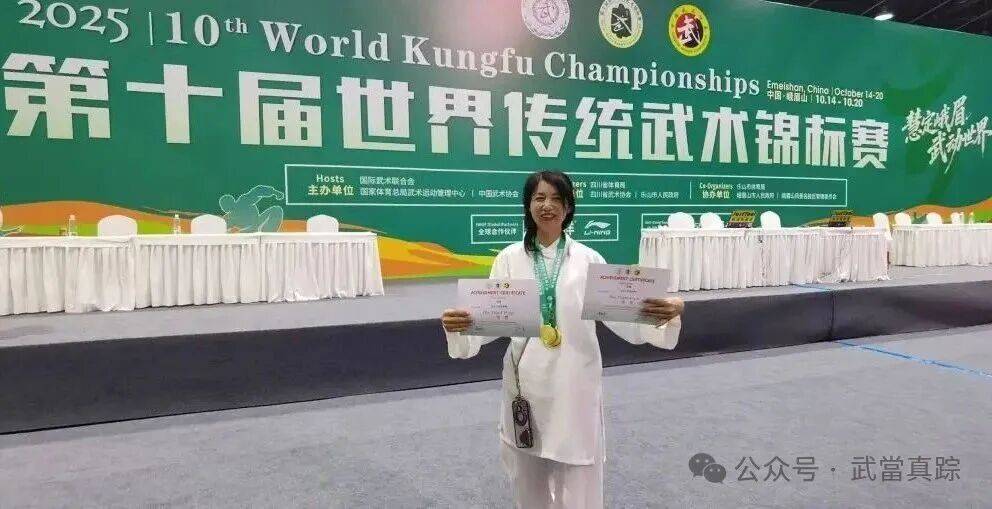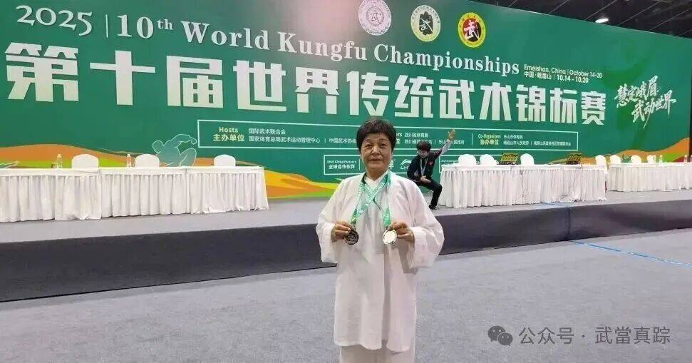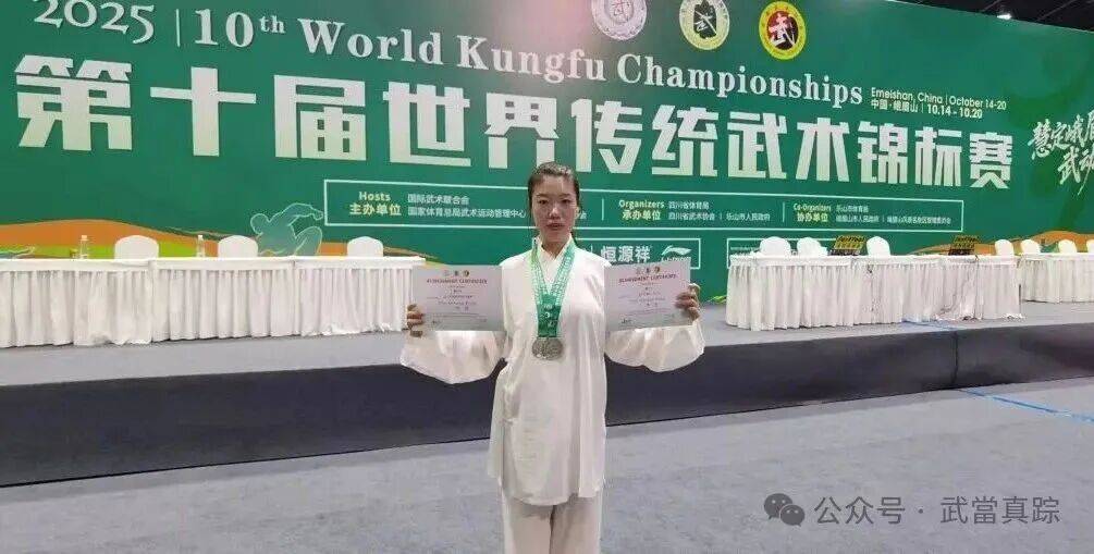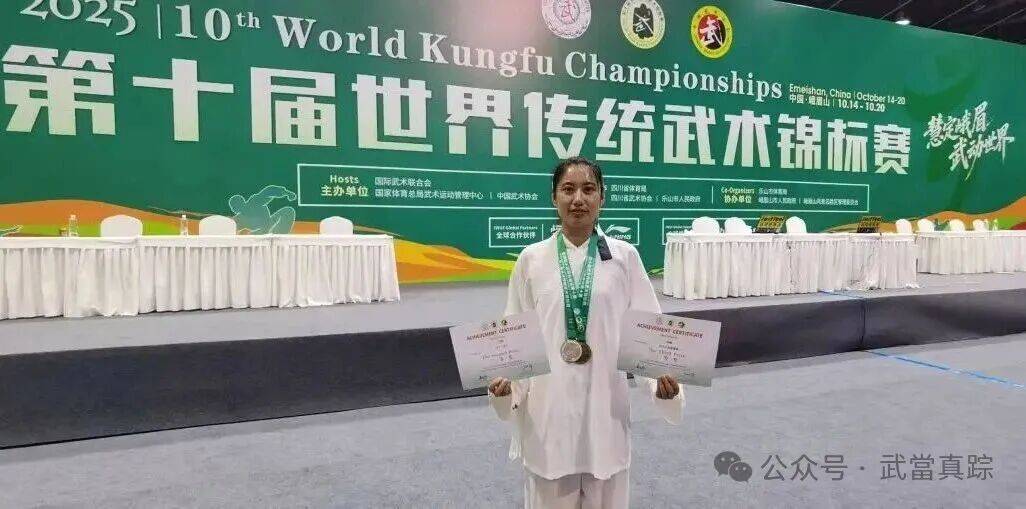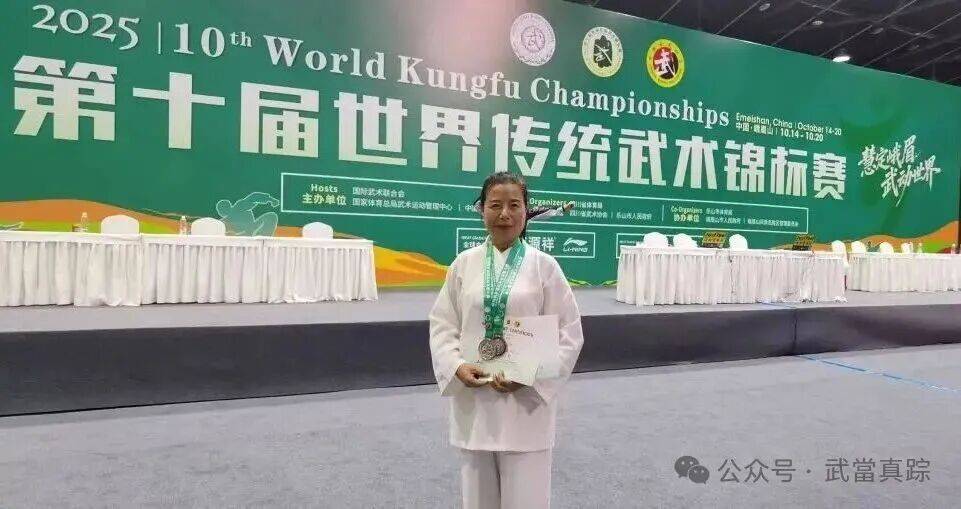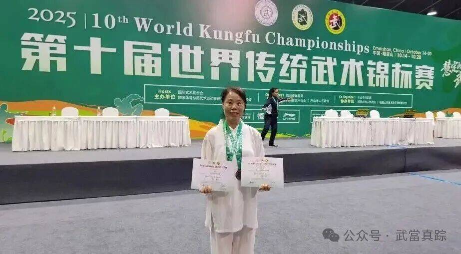 黄玲获得太极拳铜牌、武当拂尘铜牌