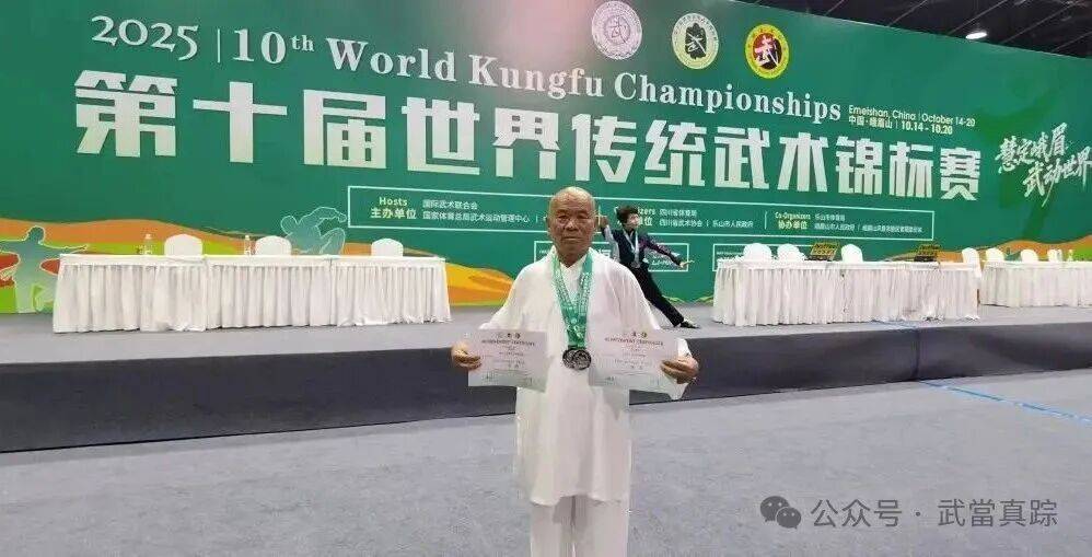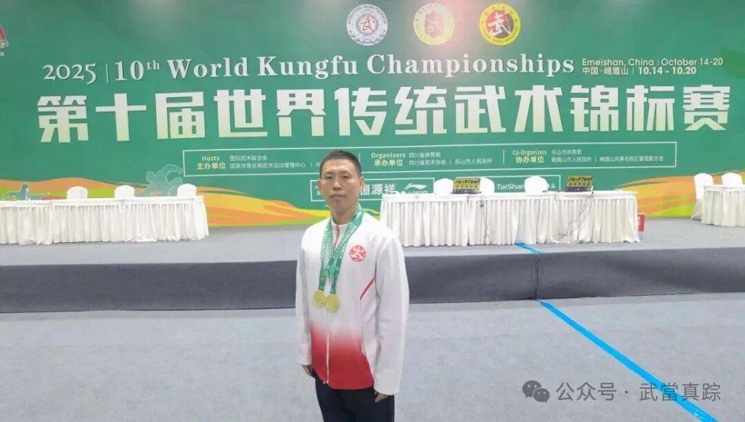 武当流派风采:刚柔并济,薪火相传 武当三丰自然派武术源自张三丰祖师嫡传,以“刚柔相济、以静制动”为核心特点,讲究“性命双修、道法自然”。如今,盘锦已成为该流派重要的传承基地,而我会正是这一传承使命的核心承载者。 作为北武当武术代表性传承人,大风老师(熊建华)早已是武术赛场的“金牌常客”——他曾在第八届世锦赛、首届全国武当拳交流大赛中屡夺金牌。此次盛会,他不仅以运动员身份再度出征,更带领众多弟子共同站上国际舞台,将武当三丰自然派的技艺与精神发扬光大。 比赛中,大风老师将恩师张奇大师所授武艺, 凭借深厚的功底与娴熟的技法,成功将个人太极拳、武当剑两项金牌收入囊中。他在赛场展现的“武当三拳一剑”核心功法,淋漓尽致地呈现了该流派“内外兼修”的精髓,让世界看到北武当武术的深厚底蕴。