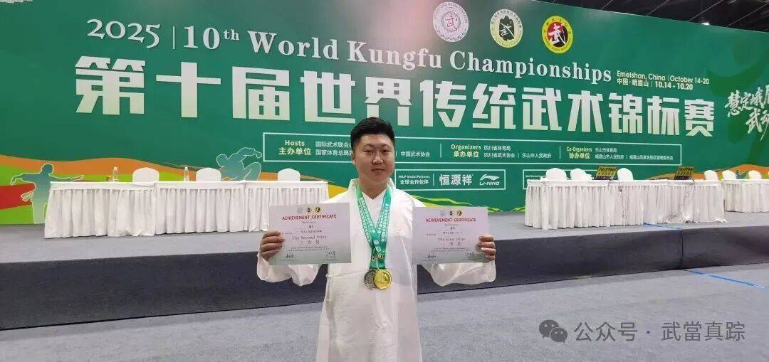 大风老师获奖照 明星健儿闪耀:师徒同心,捷报频传 除了大风老师的亮眼表现,团队中的弟子们同样不负众望,在各自项目中展现出强劲实力。 我会董李教练作为大风老师的得意弟子,在竞争尤为激烈的春秋大刀项目中表现抢眼。该组别汇聚了首都体育学院等专业队高手,共30多人同台竞技。面对强敌,董李教练凭借扎实的基本功与稳定的赛场发挥,成功杀出重围,摘得该项目金牌;同时,他还在武当太极拳项目中斩获银牌,成为团队中名副其实的“双料获奖者”。