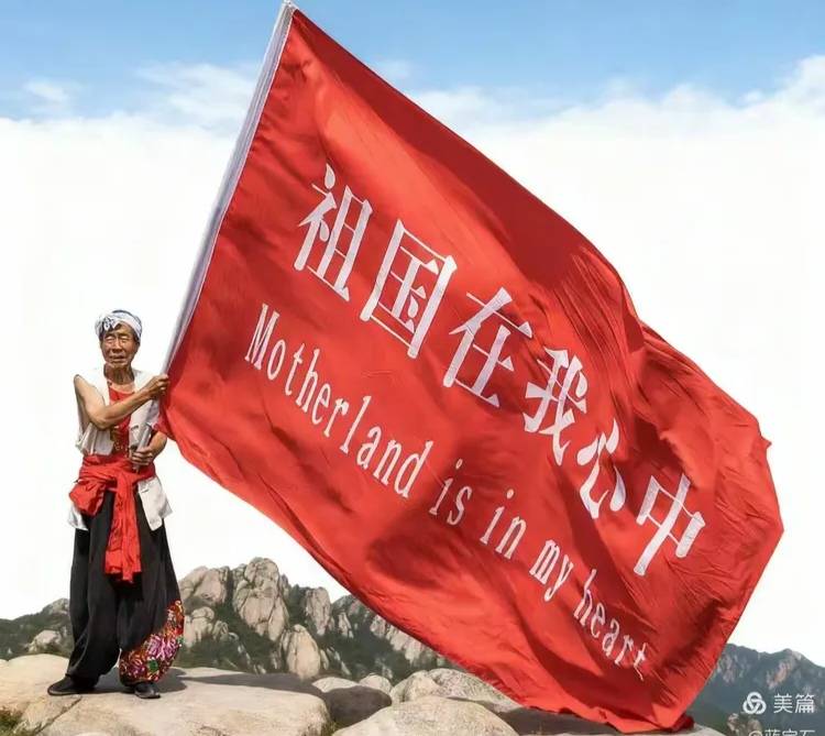 在山巅迎风展开旗帜的那一刻,心也随之激荡。蓝天之下,手持“祖国在我心中”的红旗,感受着个体与大地的深刻联结。这份庄严的情感,被镜头定格,也成为最动人的记忆。
