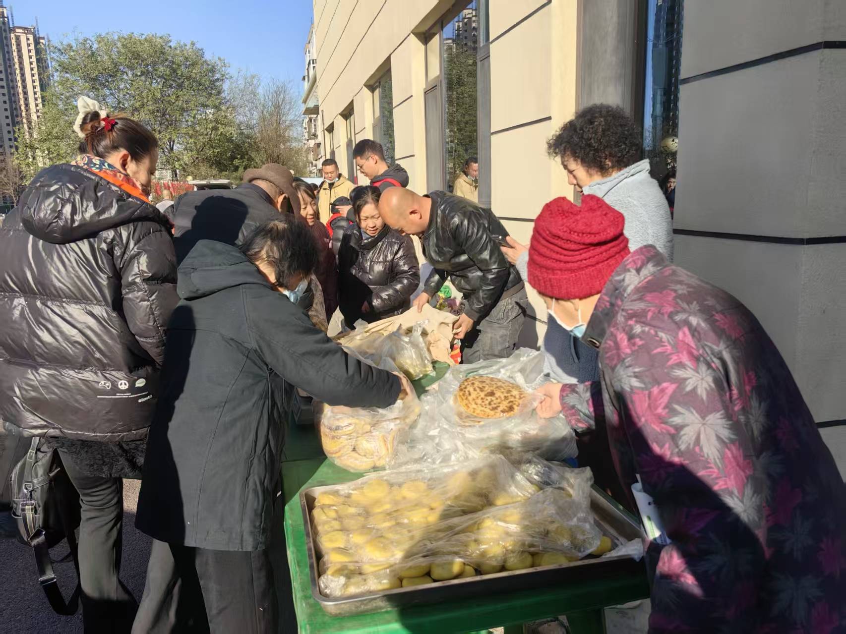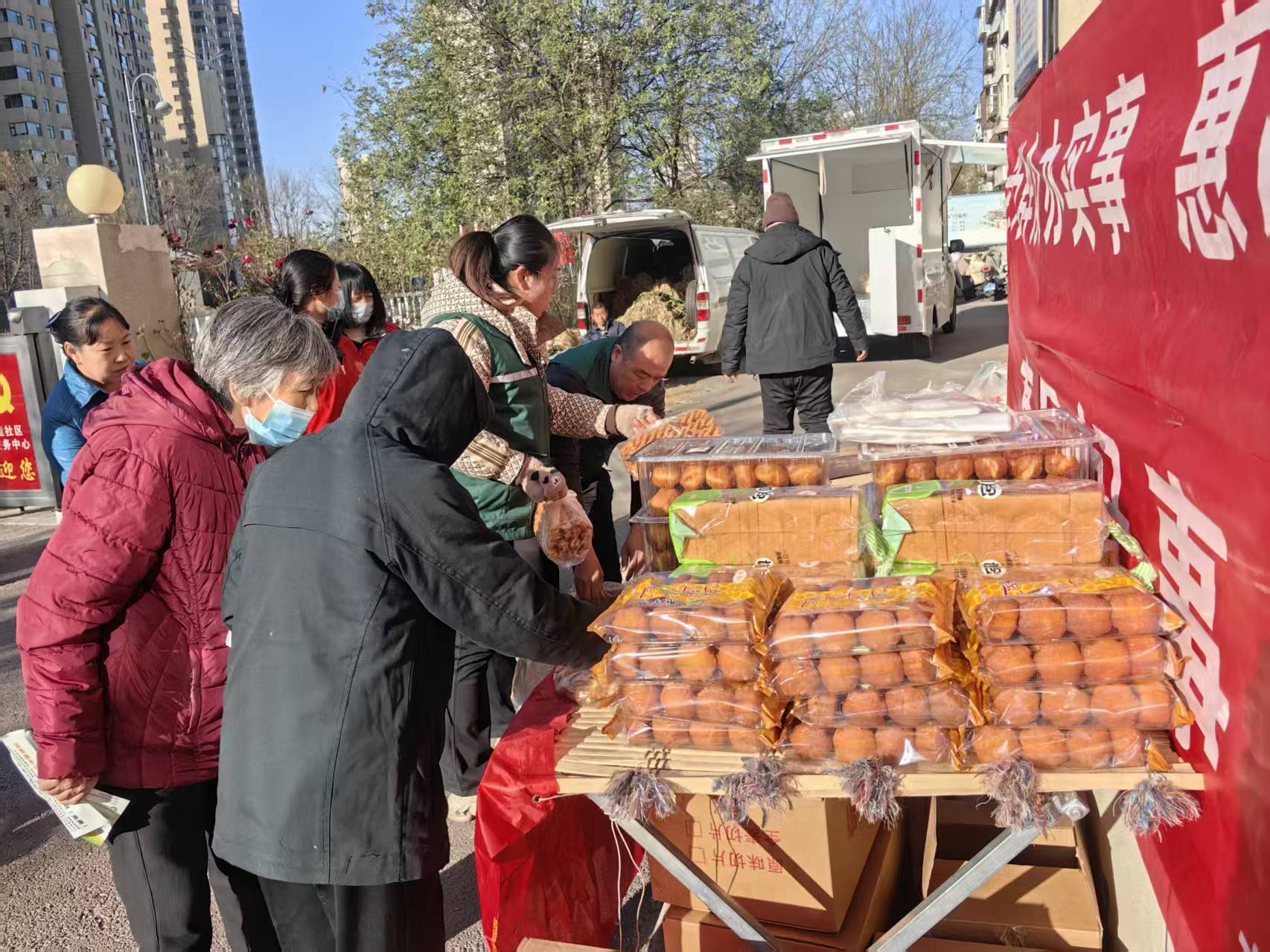 在惠民菜供应板块,社区以助农惠民为导向,联合杏花红志愿服务中心,严格筛选资质齐全、信誉良好的农商合作,根据冬季居民消费特点,在活动现场设置惠民售卖区,重点供应土豆、大葱等冬储蔬菜及各类副食品等生活必需品;同时,社区联动胜利街邮政储蓄银行,在现场增设特色食品售卖点,提供爱心馒头、香酥麻花等食品,满足居民多样化饮食需求。物资定价均低于市场均价,既帮助农商拓宽销售渠道,又切实降低居民冬季采购成本,实现“助农”与“惠民”双向共赢。