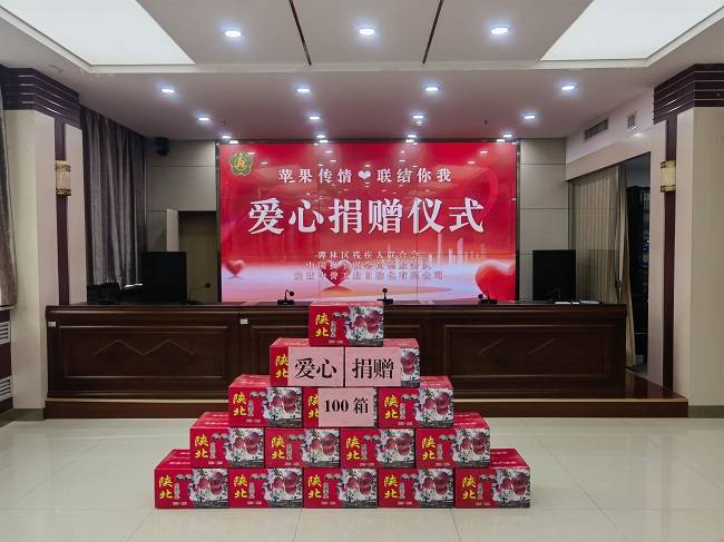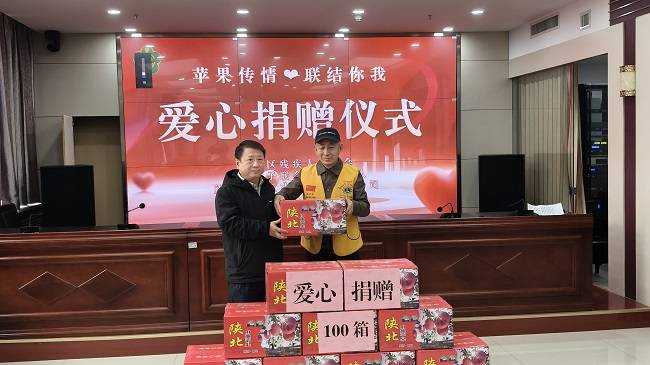 公益在线 陕西讯(记录者 王幸云) 2025年12月9日上午,古城西安冬意渐浓,但碑林区残疾人联合会四楼会议室内却暖意融融。一场名为“平安喜乐 温暖助残”的爱心捐赠活动在此温情举行。中国狮子联会陕西尚德服务队携手爱心企业陕西中誉工业自动化有限公司,向常年辛勤工作在基层一线的碑林区100名残疾人专职委员,送上了100箱满载祝福的优质苹果,以此表达对这群“温暖使者”的崇高敬意与深切关怀。
